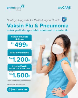 - Paket vaksin influenza + vaksin pneumonia (di klinik dan homecare)